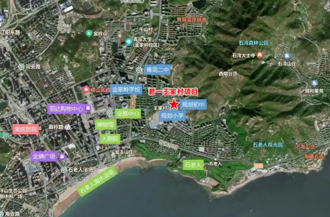 君一王家村地块位于崂山区午山山麓,梅岭东路以北、银川东路以西,春山路以南;占据石老人板块最高地势,依山傍海,低密奢享,有着难以复制的山海资源,是一处兼具繁华与静谧的隐奢栖境。