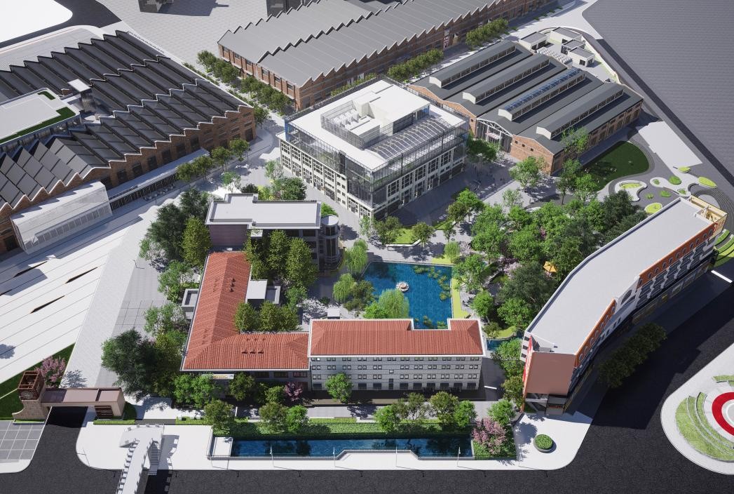 “重生”后的中车四方智汇港在设计规划中始终秉持着谦和的态度,注重与老厂房的对话与融合。项目结合老厂特色工业元素及百年古树,精心打造机车公园、四方公园等多个与城市共享的主题公园,2km生态漫步,既可与自然亲密接触,又可走进百年四方文化。中车四方智汇港工业遗产改造充分考虑了历史文脉的赓续和城市记忆的留存,同时赋予了场地新的功能与活力,满足商业运营和后续使用需求,打造多元业态新风貌。