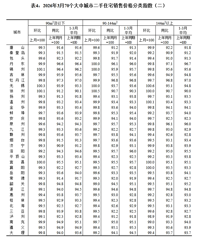 同时,严跃进指出,四个一线城市已止跌,且整体保持连续两个月的新房价格指数环比上涨。还有部分此前热度较高、后续持续调整的城市如银川,近期新房价格出现回升,释放出积极信号。同时,合肥、大连等二线城市表现同样积极。值得关注的是,吉林、宜昌、牡丹江、烟台、惠州等三四线城市活跃度亦有所提升,这些城市基本都是省内除省会外经济占比较高的地区,说明当前市场活跃度正在提升。整体来看,一二三线城市数据均有改善,这也为二季度楼市稳中向好创造了更好的基础。